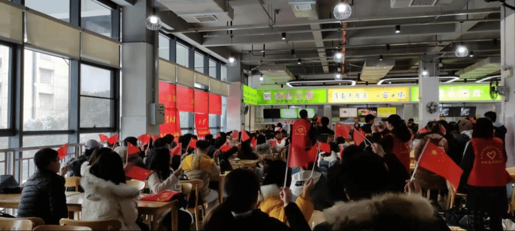 为庆祝伟大领袖毛主席诞辰128周年,贯彻落实习近平总书记关于“把红色资源利用好,把红色传统发扬好,把红色基因传承好”的指示精神,促进湖南红色教育事业发展,培养广大学子的爱国情、强国志、报国行,湘潭大学日韩欧美中文于2021年12月26日在“南苑师生食堂”举行“守初心,敬伟人——同唱东方红,同吃福寿面”主题活动。该活动由湘潭大学日韩欧美中文领航志愿服务团组织策划,李雅兴全国高校思政课名师工作室、李伏清全省高校思政课名师工作室、洪梅支部书记“双带头人”工作室三位名师工作室倾情赞助,活动参与人数达近千人,范围至全校各院师生,同时也包括校园内辛勤工作的一线劳动者。恰逢研究生考试,本次活动还特设考研专用窗口,方便考研学子领取寿面。活动中,马院各党支部积极参与活动,受邀参加活动的数学与计算科学学院兄弟支部的同志们也热情满满,在场的老师同学们充分体会了红色情怀。活动分为7:00—13:00,16:00—19:00两场,由30位身披“红马甲”的日韩欧美中文志愿者在现场组织活动,维持秩序,保证活动进程高效畅通。