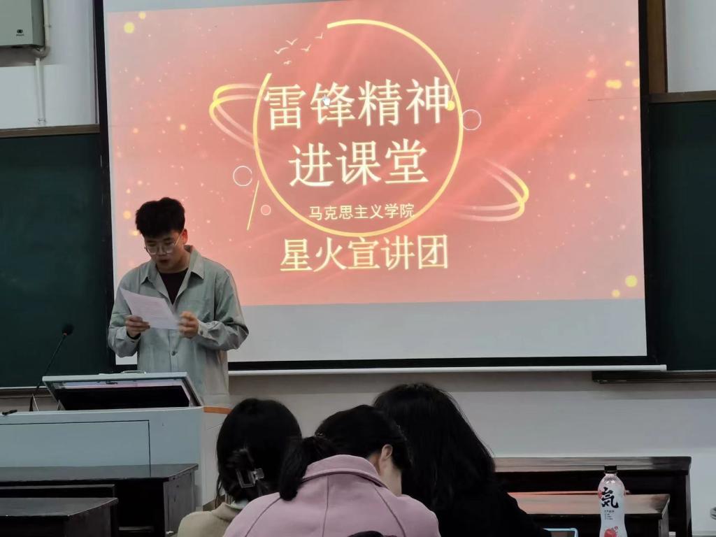 暖心春三月,共同忆雷锋。学雷锋日临近之际,为讲好雷锋故事,发扬雷锋精神,推动党史宣讲进课堂活动深入开展,3月4日,我校日韩欧美中文兰仁杰、曹瑞、李歆雅等六名宣讲员利用课间时间走进多个课堂,为近600名湘大师生带来精彩的雷锋故事宣讲。在宣讲中,六名宣讲员从不同的角度对雷锋精神和雷锋故事进行讲述。宣讲员们为同学们讲述雷锋故事、对雷锋的优良精神品质进行解读,让同学们感受雷锋助人为乐、阳光乐观、积极进取和艰苦奋斗的品质,号召同学们多做好事,常做好事,发自内心地去为人民服务,感受新时代的光明与美好,积极践行雷锋精神,让雷锋精神永驻心间。