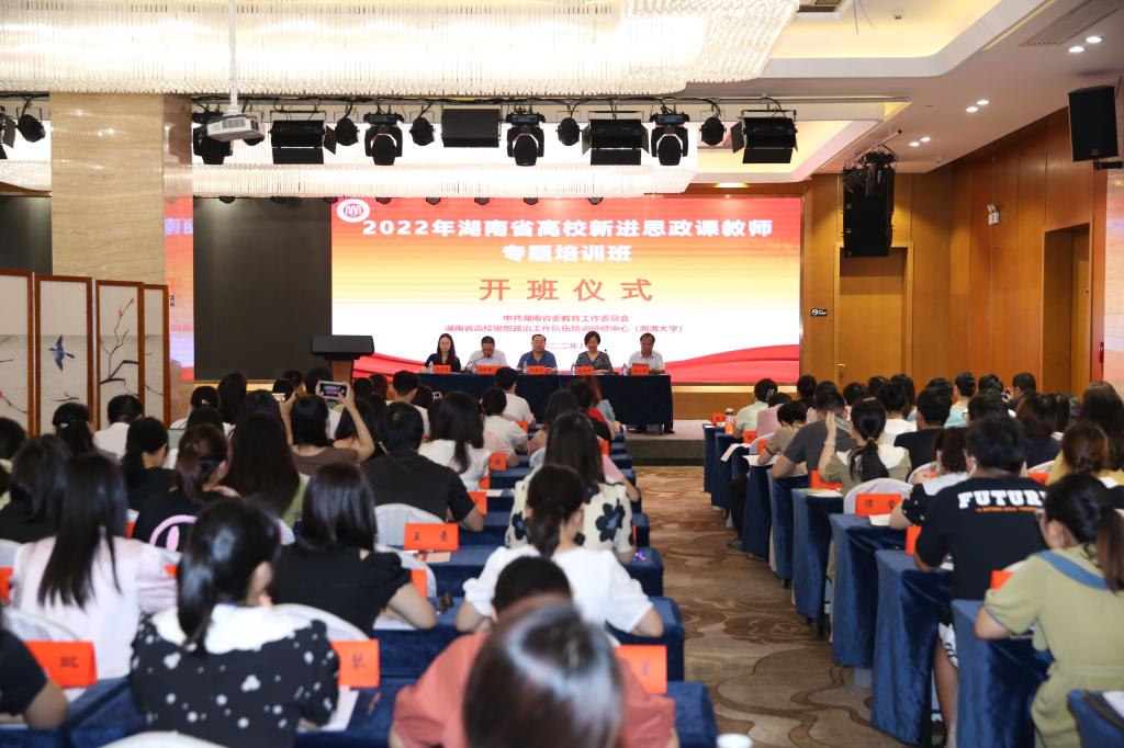 8月22日上午,2022年湖南省高校新进思政课教师专题培训班开班。湖南省委教育工委宣传部部长刘书华、我校副校长刘建平出席开班仪式,来自全省91所高校的110名新入职思政课教师参加培训。