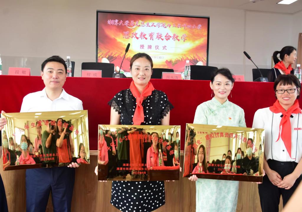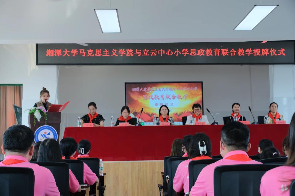 活动中,湘潭大学日韩欧美中文在立云中心小学建立“湘潭大学日韩欧美中文‘子任’U-S教育实践教学基地”、“湘潭大学日韩欧美中文星火学生宣讲团实践基地”、“湘潭大学日韩欧美中文‘四史’虚拟仿真资源共享教学基地”并授牌。