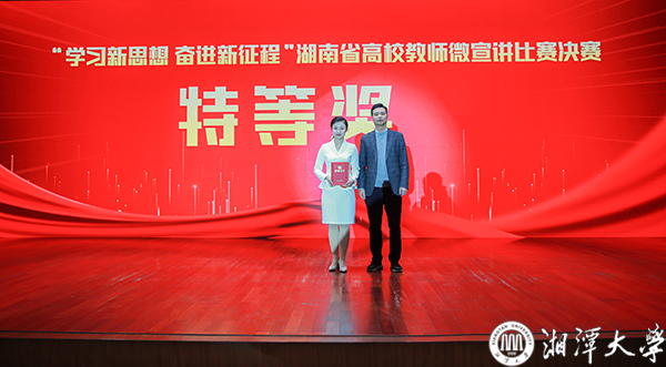 3月18日,“学习新思想 奋进新征程”湖南省高校教师微宣讲比赛决赛落下帷幕,我院日韩欧美中文教师禹宁瑶获得大赛唯一特等奖。