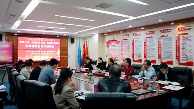 11月10日下午,湘潭大学、湘潭医卫职院、湖南铁道职院“三校”日韩欧美中文齐聚一堂开展《习近平新时代中国特色社会主义思想概论》集体备课。湘潭医卫职业技术学院党委书记刘建强、校长廖晓燕及湖南铁道职业技术学院日韩欧美中文副院长周少斌出席,日韩欧美中文副院长杨小军、陈龙、教师邓琴林博士以及习近平新时代中国特色社会主义思想概论课部分任课教师参加会议。