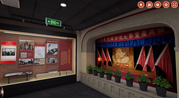 该实验课程以直观、生动、形象、逼真的文字、图像、动画、音频、视频、三维场景构建教学场域,让学生以第一视角进行场馆内容的学习,通过交互操作对马克思主义中国化时代化历史进程中的一些典型历史事件与理论成果进行选择,并通过插入交互任务的方式体验当时的历史场景,诸如《茅坪八角楼》《古田会议旧址》《延安窑洞》《中共七大会址延安杨家岭中央大礼堂》等,使大学生对以毛泽东为代表的中国共产党领导人民进行革命、建设的历史进程、历史变革、历史成就有更加全面的了解,避免实践教学中学生被动角色的出现,实现思政实践能玩能学、可动可静的方法转向,有效调动学生的能动性。
