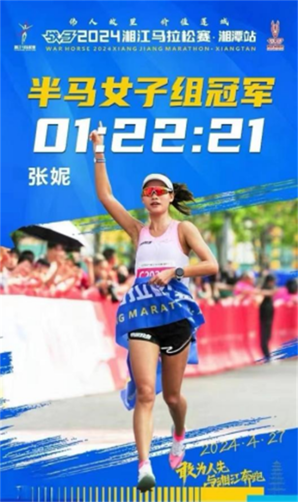 在3月31日举行的株洲站比赛中,张妮以1小时21分的成绩获得半马女子组冠军。4月21日长沙站比赛中,张妮奋力拼搏,凭借稳定的节奏和技高一筹的能力,以1小时22分47秒的成绩夺得半马女子组冠军。