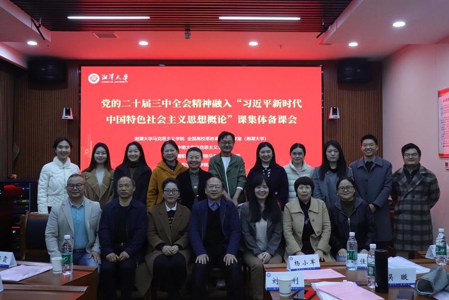 为深入学习贯彻党的二十届三中全会精神,使思政课建设与党的创新理论武装同步推进,12月4日,湘潭大学、中南大学、湘潭医卫职业技术学院、湖南铁道职业技术学院四校联合集体备课会举行。中南大学毛泽东思想和中国特色社会主义理论体系概论教研部主任李淼磊、湖南铁道职业技术学院习近平新时代中国特色社会主义思想概论教研室骨干教师贺彩霞、湘潭医卫职业技术学院日韩欧美中文副院长黄景鹃出席,湘潭大学日韩欧美中文原院长颜佳华、副院长杨小军、全国名师工作室负责人李雅兴,以及习近平新时代中国特色社会主义思想概论课专兼职教师参加会议。