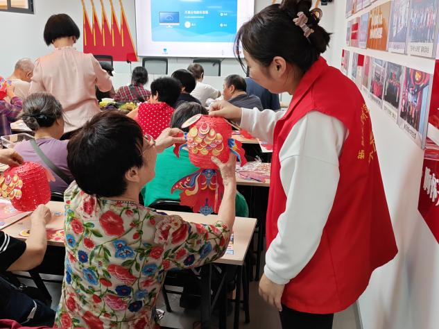 最后,在传统文化体验区,志愿者们耐心细致地协助居民们制作中秋花灯。从分发材料,细致讲解,到答疑解难,居民们终于亲手制作出了一盏盏承载着团圆美好祝愿的花灯。在整个过程中,志愿者们不仅在互动中跟居民们拉家常、分享各自家乡的中秋习俗,更用青春活力深深感染了在场的每一个人,让传统的花灯制作过程变得生动有趣。